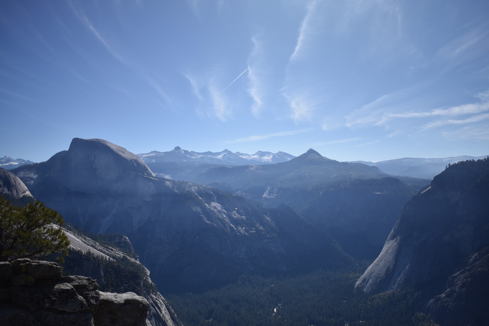 At the top, I had to hike 0.2 miles down to the viewing area of the upper Yosemite falls where I met up again with the guy from earlier and found out that one can not really view the falls at all from this point so why they went about doing the work to make a railing and steps I do not know. Now I had to climb all those stairs back up! Talk about a stair master, my legs should be steal after this. I decided I would join him for an additional mile to get to Yosemite point. We got somewhat off trail but made it there and boy was the view something else! It was breathtaking up there and he and I stood talking for awhile before deciding I was going to head down and he was going to continue on to North Dome.
